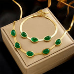 🐍 سوار باك سنيك مطلي ذهب – مزين بحبيبات زمرد أخضر | ستانلس ستيل 316