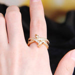 Gold-Plated Nail-Shaped Ring with Diamond Zircon Lobes – 316 Stainless Steel