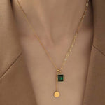 Gold-Plated necklace with Green Emerald Stone | 316 Stainless Steel