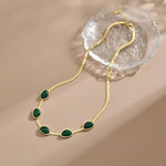 Step into a sophisticated charm with this snake back necklace, plated in rich 18K gold and decorated with vibrant emerald green lobes. Crafted from premium 316 stainless steel, this piece is as durable as it is dazzling — designed to resist tarnish and maintain its glow over time.